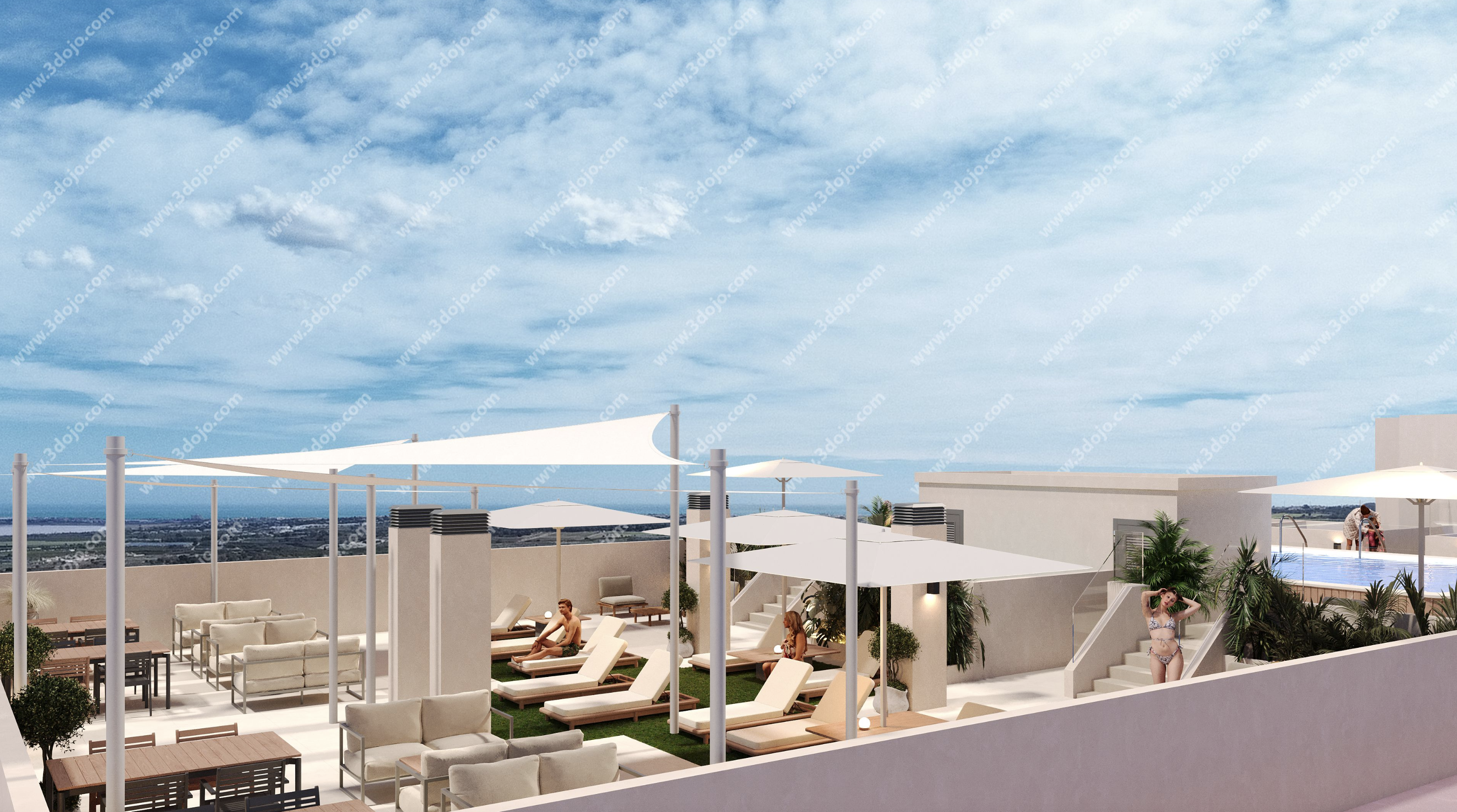 Het complex beschikt over gemeenschappelijke voorzieningen die sociale interactie en ontspanning bevorderen, waaronder tuinen, ontspanningszones, fietsenstalling en een kinderspeelplaats. Op het dak bevindt zich een recreatiezone van meer dan 350 m², met een zwembad van 70 m² met kinderzone, pergola’s, ligbedden en parasols, alles met panoramisch uitzicht op de natuurlijke omgeving.